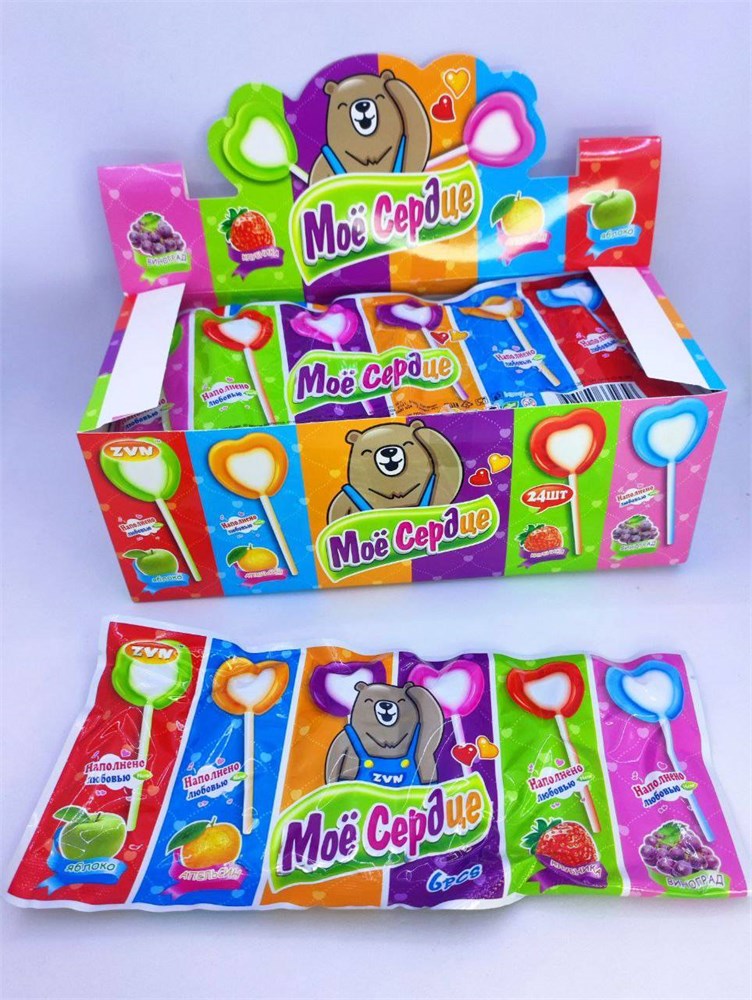 Конфета «Моё сердце» ZVN. со вкусом клубники, апельсина, яблока, винограда. 18 гр., 24 шт., уп