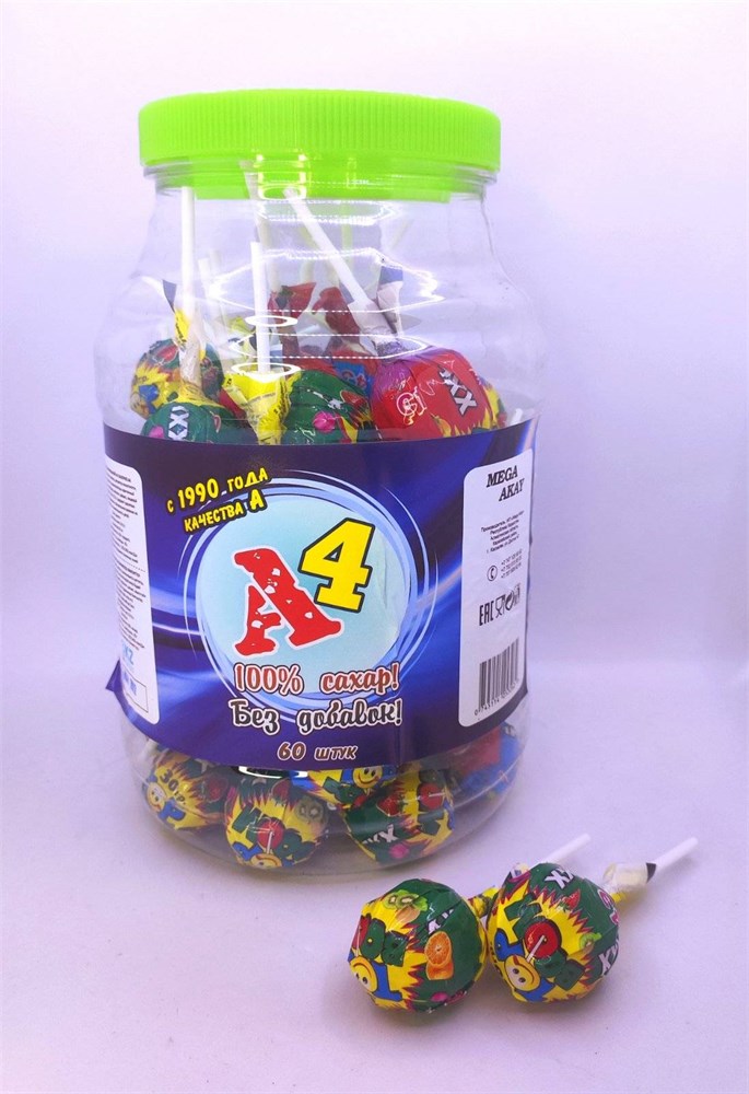 Леденец A4 с жевательной резинкой 28 гр. 60 шт. уп.