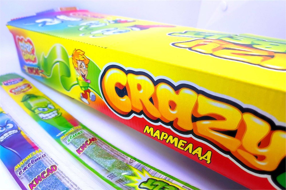 Мармелад в кислой обсыпке "CRAZY GUMMY CRAZY BELT" (кислый ремешок) тутти -фрутти 15гр*54шт*