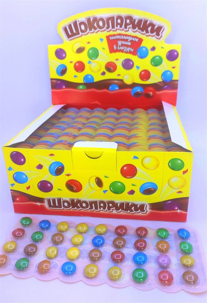 Шоколадное драже в глазури на блистере "Шоколарики" 20 гр. 24 шт. уп.
