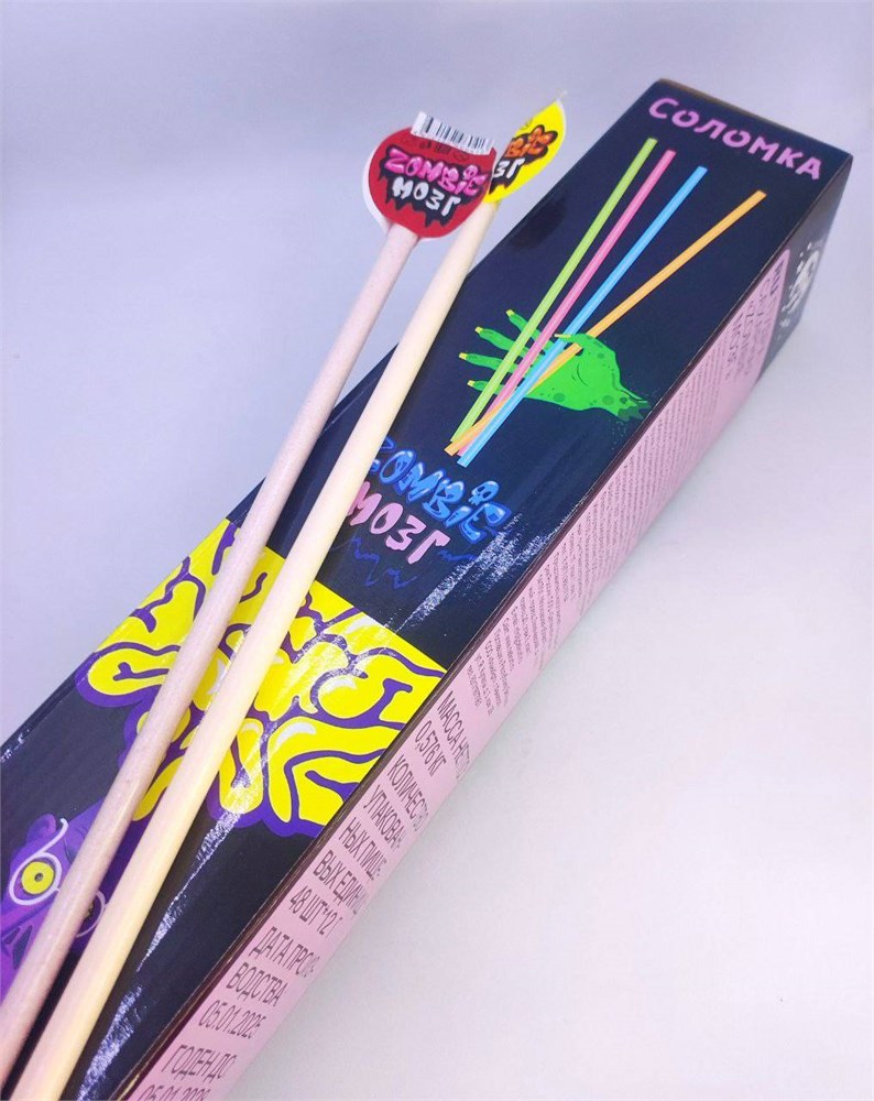 Трубочки с сахарной пудрой "Zoмbie Мозг" 12 гр. 48 шт. уп.